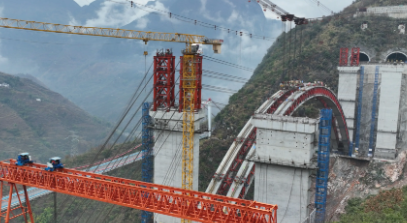 發(fā)布時間 :2025-03-29 11:38 瀏覽次數(shù) : 160烏蒙山大橋,宛如一座即將橫跨天塹的鋼鐵巨龍,其建設(shè)過程充滿了挑戰(zhàn)與創(chuàng)新。主拱圈節(jié)段在特制的胎座上精心預(yù)制,每一塊節(jié)段都如同巨龍身上的關(guān)鍵鱗片,承載著橋梁的穩(wěn)固與安全。預(yù)制完成后,將啟用大噸位、無塔架、可橫移式纜索吊裝系統(tǒng)來進(jìn)行吊裝作業(yè),這一系統(tǒng)猶如一雙無形卻強(qiáng)大的巨手,精準(zhǔn)地將節(jié)段吊運(yùn)至指定位置。